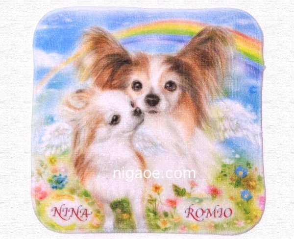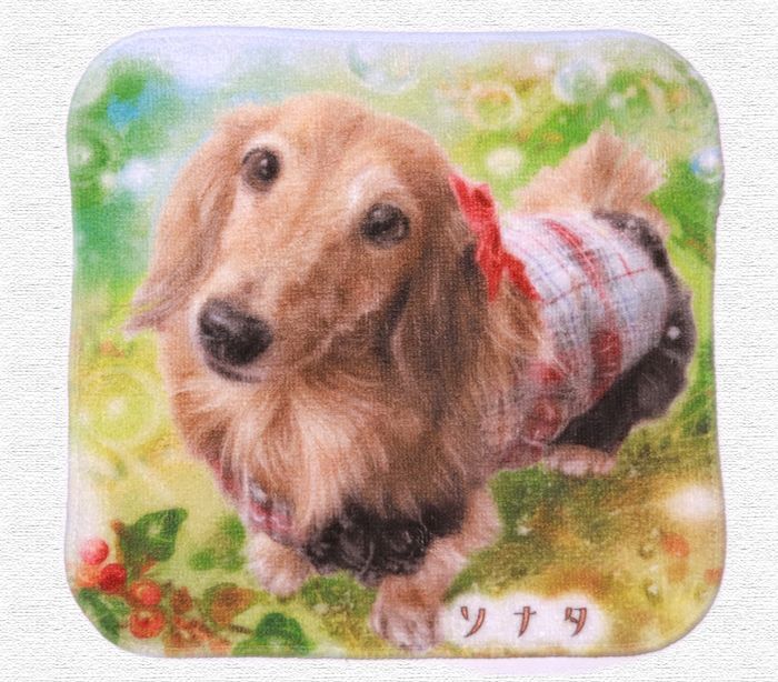 ペットちゃんの似顔絵が描かれたミニタオルハンカチは、お仕事やお買い物など、身につけて持ち歩くのにぴったり❣️